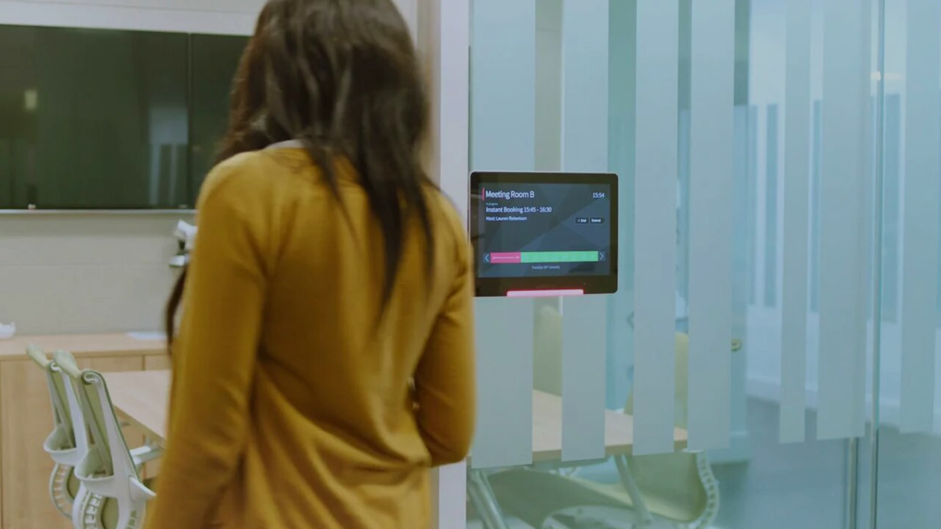 - Smart touchscreen Make, start, extend or end your booking at the room.